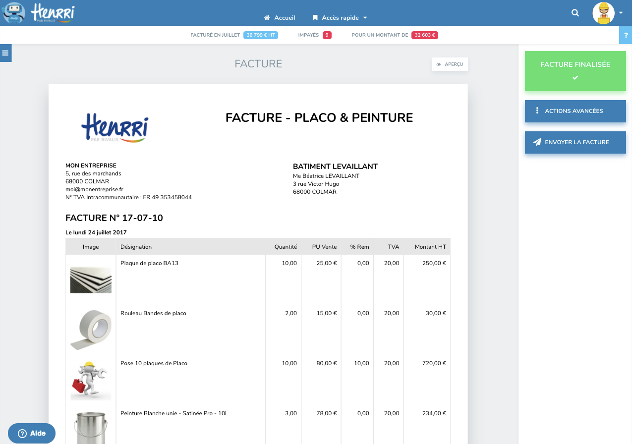 Créez un nombre illimité de factures, devis et avoirs avec Henrri